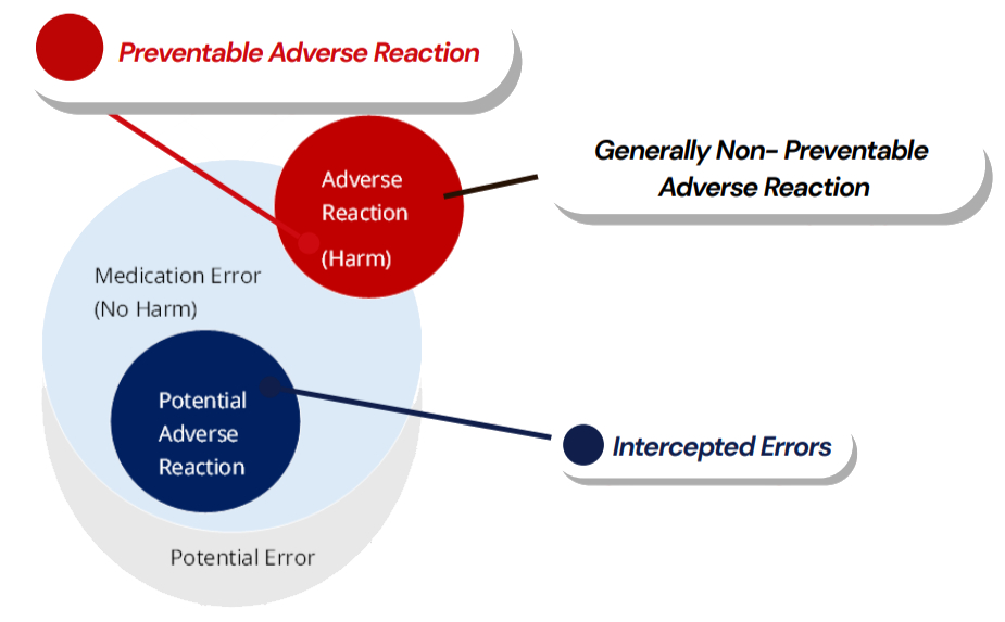 The diagram is provided for illustrative purposes only to support understanding of medication errors in the context of patient safety, and is not intended to inform or replace pharmacovigilance reporting obligations.