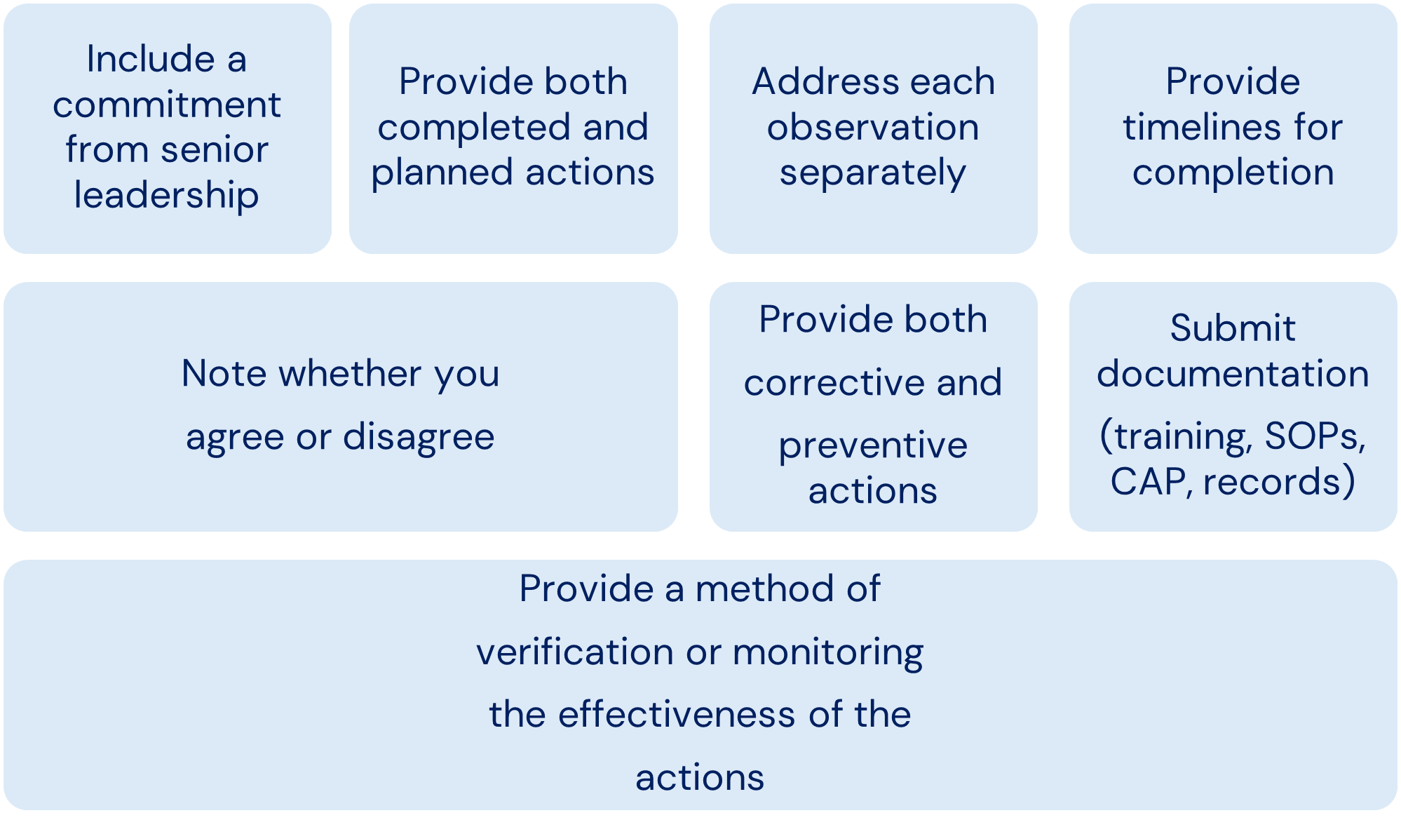 - Demonstrates your commitment to correct the observations to the FDA
